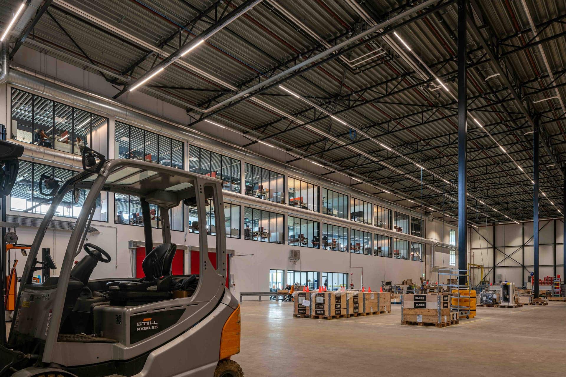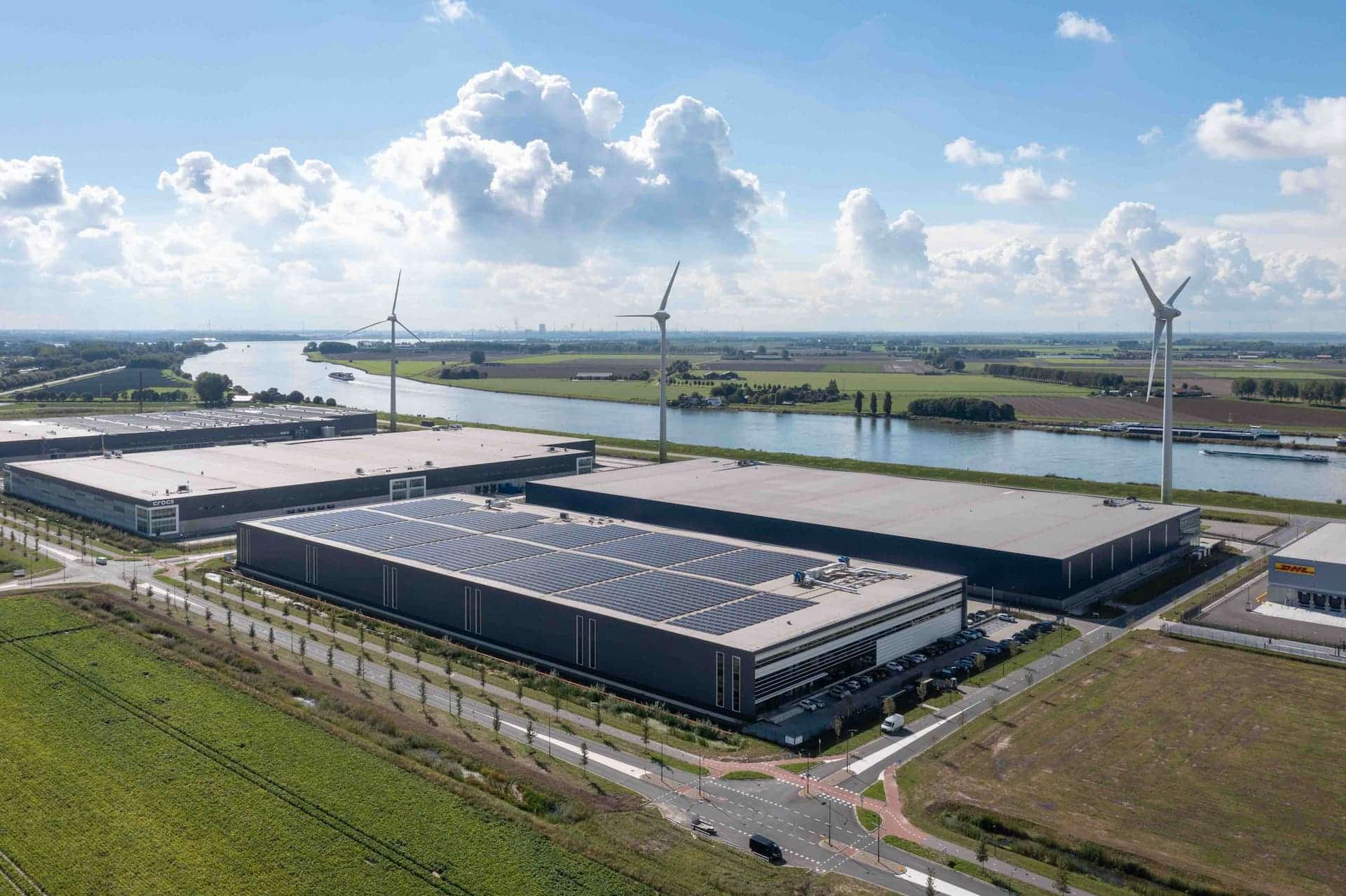 Distripark Dordrecht: the one innovative logistics industrial estate in Zuid- Holland. With four wind turbines and 22.000 solar panels, this is one of the first 'all electric', entirely gasless industrial estates in The Netherlands. Borghese Logistics realises 22.141 m² here, divided across business space (18.826 m²), office space (2.615 m²), mezzanine (664 m²). At Distripark Dordrecht, Borghese Logistics develops this state-of-the-art distribution centre, after a design by Mies Architectuur. The own connection with the A16, the proximity of the Dordtse Zeeport, as well as the ports of Rotterdam and Antwerp ensure optimal reachability.