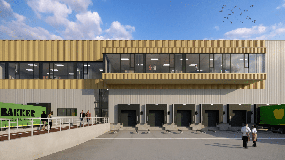 In Nieuw-Reijerwaard, Ridderkerk, Borghese Logistics is developing a high-quality logistics fresh center of 55,600 m² UFA for Necron Group. This cutting-edge facility will become the new location for Bakker Barendrecht, part of Greenyard. The building will feature a warehouse of 35,500 m², approximately 4.200 m² of office space, and over 12.000 m² of mezzanine. The site will also include 625 parking spaces for cars, 60 truck parking spaces, and 54 loading docks. Sustainability is a key focus of the development. The fresh center will be built to BREEAM ‘Excellent’ standards and equipped with 3 megawatts of solar panels. The design is by Bessels Architecten & Ingenieurs, and construction is being carried out by Pleijsier Bouw. Thanks to its strategic location in Dutch Fresh Port Ridderkerk, the facility will benefit from excellent accessibility. Completion is scheduled for mid-2026.